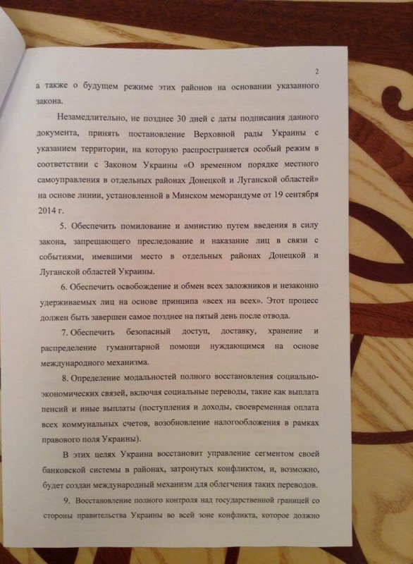 — особый статус отдельных районов Донецкой и Луганской областей должен предусматривать право на языковое определение и трансграничное сотрудничество с регионами РФ.