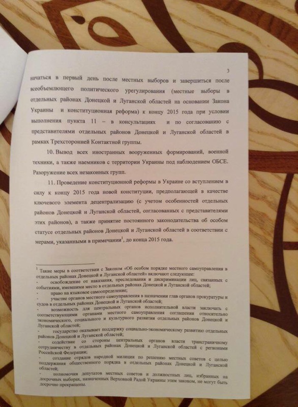 — принятие постоянного законодательства об особом статусе отдельных районов Донецкой и Луганской областей;
