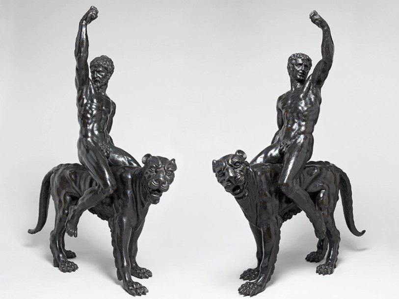 Впервые упоминаются они в каталоге коллекции швейцарского банкира барона Адольфа де Ротшильда в 1878 году. Тогда же впервые возникло предположение, что автором скульптур мог быть Микеланджело. Но оно было немедленно оспорено. Однако высокое качество литья и стиль скульптур указывал, что они принадлежат эпохе итальянского Возрождения XVI века. В качестве возможных их авторов называли Якопо Сансовино и Тициано Аспетти, последний из которых как раз прославился своими работами из бронзы.