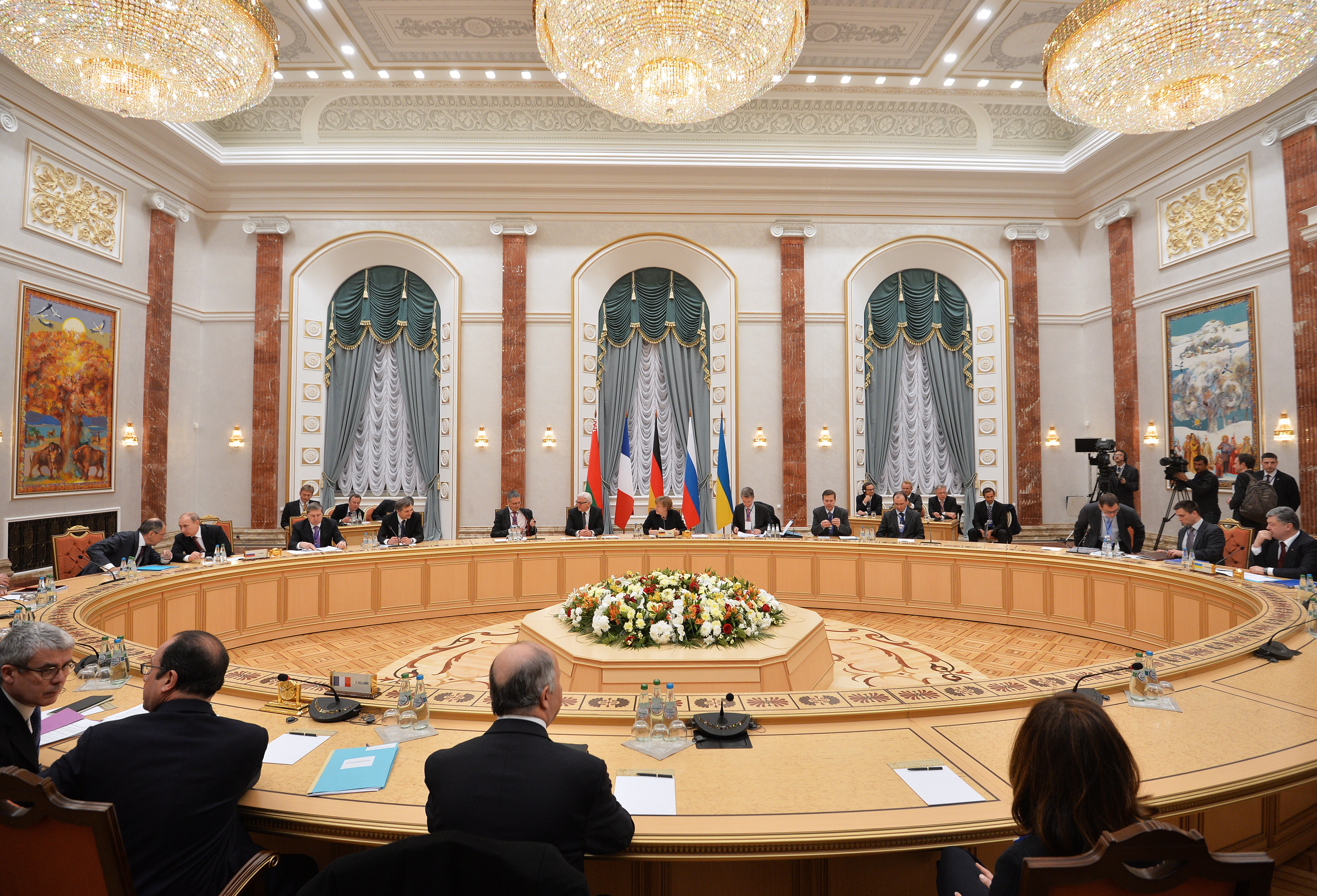 – Переговоры в Минске длились больше 15 часов. Под утро стало казаться, что результатов не будет. Владимир Путин предложил всем участникам договариваться напрямую с представителями сепаратистов, а Петр Порошенко покинул зал заседаний и назвал условия России неприемлемыми. Но в 12 часов дня по Москве к прессе вышел российский президент с улыбкой на лице.