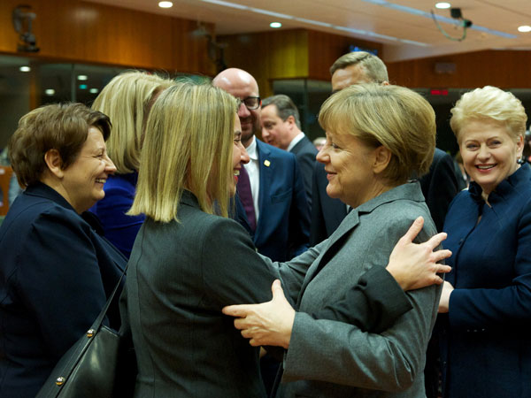 Федерика Могерини и Ангела Меркель. Фото: European Council/flickr.com Комментарий редактора: Как заявил пресс-секретарь президента России Дмитрий Песков, на переговорах «нормандской четверки», которые прошли в белорусской столице 11-12 февраля, не поднимался вопрос об антироссийских санкциях или о судьбе Крыма. «Вопрос о санкциях — это не наш вопрос. Это вопрос тех, кто играет с этим обоюдоострым оружием», — отметил он.