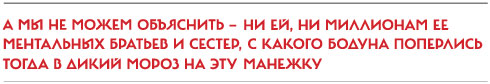 А мы не можем объяснить — ни ей, ни миллионам ее ментальных братьев и сестер, с какого бодуна поперлись тогда в дикий мороз на эту Манежку, после того как судья Замоскворецкого суда отправила за решетку Олега Навального и дала очередной условный Алексею Навальному. Мы вязнем в очевидности, — точнее, в том, что кажется очевидным — нам. И в беспомощности опускаем руки на первых же словах.