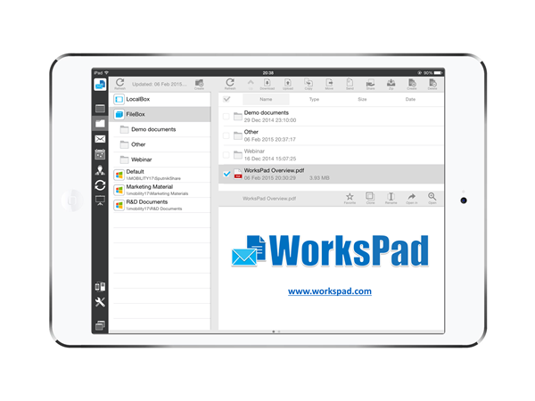 Функционал анонсированной новой версии значительно расширился. В числе основных возможностей WorksPad появился доступ к общим папкам Windows и библиотекам документов SharePoint, DropBox, а также к папкам на ПК пользователя. Набор программ MSOffice остался тот же, но теперь пользователь может напрямую обмениваться любыми документами не только через встроенную почту, но и открывать все файлы на смартфоне или планшете, а также проводить презентации, вещая на другие корпоративные планшеты по Wi-Fi. В приложение встроены средства просмотра файлов различных форматов и средства для работы с архивами в формате zip. Появился многоэкранный интерфейс для работы с несколькими документами и письмами, рабочий стол с быстрым доступом к избранным документам. В WorksPadвозможно параллельно работать на операционных системах iOS, Android и Windows.