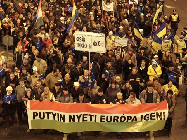 16 февраля, накануне приезда в Венгрию российского президента Владимира Путина, в Будапеште прошла акция протеста против этого визита, сообщает DW. По данным агентства AFP, в демонстрации, организованной протестным движением Human-Platform, приняли участие около 2000 человек.