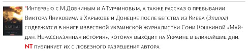 Я вышел от него, пошел в парламент. По дороге — связался с руководителями «Самообороны», проинформировал о договоренности насчет перемирия, дал приказ отступать к Майдану. И вот мы начинаем отступать, а «Беркут» вместо того, чтобы прекратить стрельбу, палит нам в спины и — на нашем отходе — начинает свое наступление. Причем наступление было очень активным… /…/ Мы отступали организованно, а они решили воспользоваться этим моментом. Додавить. Дойти, опять-таки — на наших спинах — прямо на Майдан. По Институтской они существенно продвинулись, прорвали несколько заграждений, отбили Октябрьский и подступили уже к самому Майдану.… Наконец, я в Раде. Врываюсь в кабинет к Рыбаку. «Это, — говорю, — скотство! Вы подло себя ведете. Мы только что с Януковичем договорились, и мы свои обязательства выполняем, тогда как «Беркут» действует ровно наоборот. Немедленно набирайте Януковича». Рыбак что-то залепетал, начал ему звонить. Янукович не брал трубку. Тогда набрали Клюева (Андрей Клюев — глава администрации Виктора Януковича. — NT). Я рассказал ему о своей встрече с Януковичем. «Мы договорились о прекращении огня, а вы вместо этого начали активную фазу наступления», — говорю ему. На что Клюев отвечает: «Ну, так что же, это — война, на войне все средства хороши…»