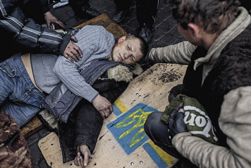 Раненный на баррикадах на Майдане Незалежности, Киев, 20 февраля 2014 годаАндрей Парубий: 20-го числа со мной на контакт вышли представители западных посольств. Когда бои стали стихать, около 16 часов, я назначил дипломатам встречу. Они говорили, что встречались с Януковичем и получили предостережение от него, что в Киев из западных регионов едет большое количество оружия. Мой вывод: вот эта информация про оружие и стала конечным психологическим фактором, который сломал Януковича, а заодно и многих бойцов «Беркута». Мы просто передавили их психологически. В действительности же ни о каких поставках оружия со складов на Майдан речи не шло. Но я не стал их (Януковича и «Беркут») разочаровывать и убеждать в обратном. Ну и во-вторых, Янукович сломался потому, что, видимо, уже понял: за погибших людей ему придется отвечать перед народом.