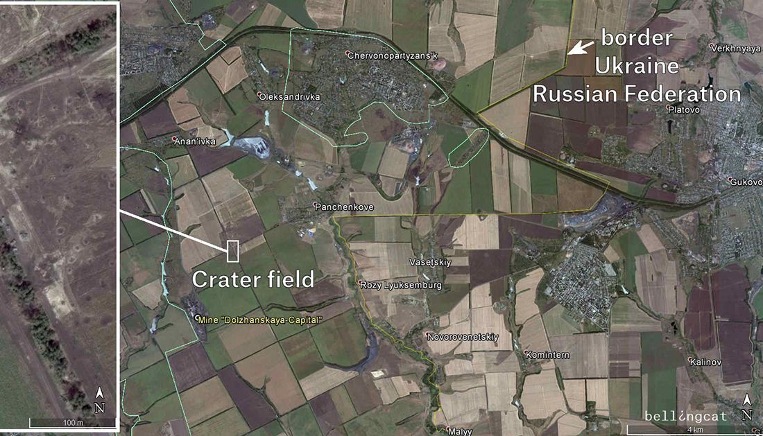 Исследование Bellingcat опирается на данные спутниковых снимков проекта Google Earth, сделанных в июле-сентябре 2014 года. На них видны воронки от снарядов на востоке Украины, а также следы перемещения техники как на российской, так и на украинской территории. В общей сложности команда Bellingcat проанализировала 1353 воронки на востоке Украины и составила траектории полета снарядов. Они совпадали с предположительными огневыми позициями, обнаруженными исследователями на основе спутниковых съемок на территории России. Только в одном случае предположительная огневая позиция находилась на украинской территории — в двух километрах от российской границы.
