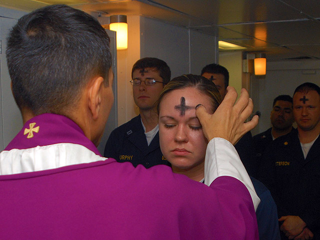 В Пепельную среду принято соблюдать строгий пост. А тем, кто не смог в этот день участвовать в мессе, домашние обычно приносят освященный пепел и посыпают им их головы, говорится в информации РИА "Новости".