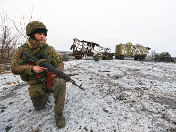 Однако миссия ОБСЕ вчера так и не посетила Дебальцево, поскольку там продолжались бои: украинская армия предпринимала попытки деблокировать основную дорогу Артемовск — Дебальцево, а наземные силы активно поддерживала артиллерия с обеих сторон".