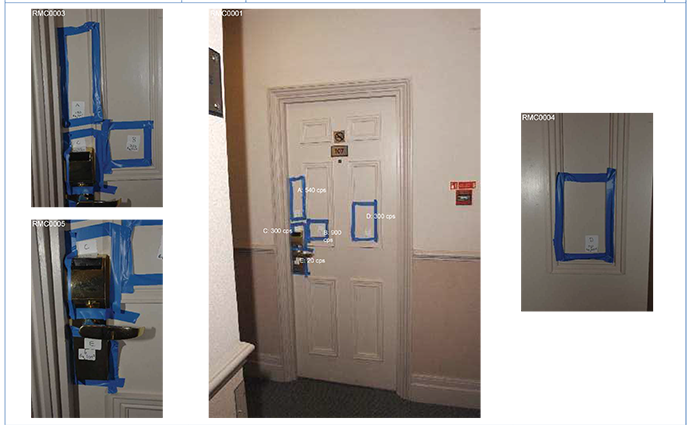 В номере 848 отеля Sheraton, где останавливался Луговой, показатели уровня радиации тоже весьма необычны (Луговой жил в этом отеле во время второй из трех поездок в Лондон, между 25 и 28 октября 2006 года). Согласно модели, уровень излучении был повышен в районе стены, пола, сиденья унитаза и телефонной книги. Но в фиолетовый окрашен только один предмет: мусорная корзина.