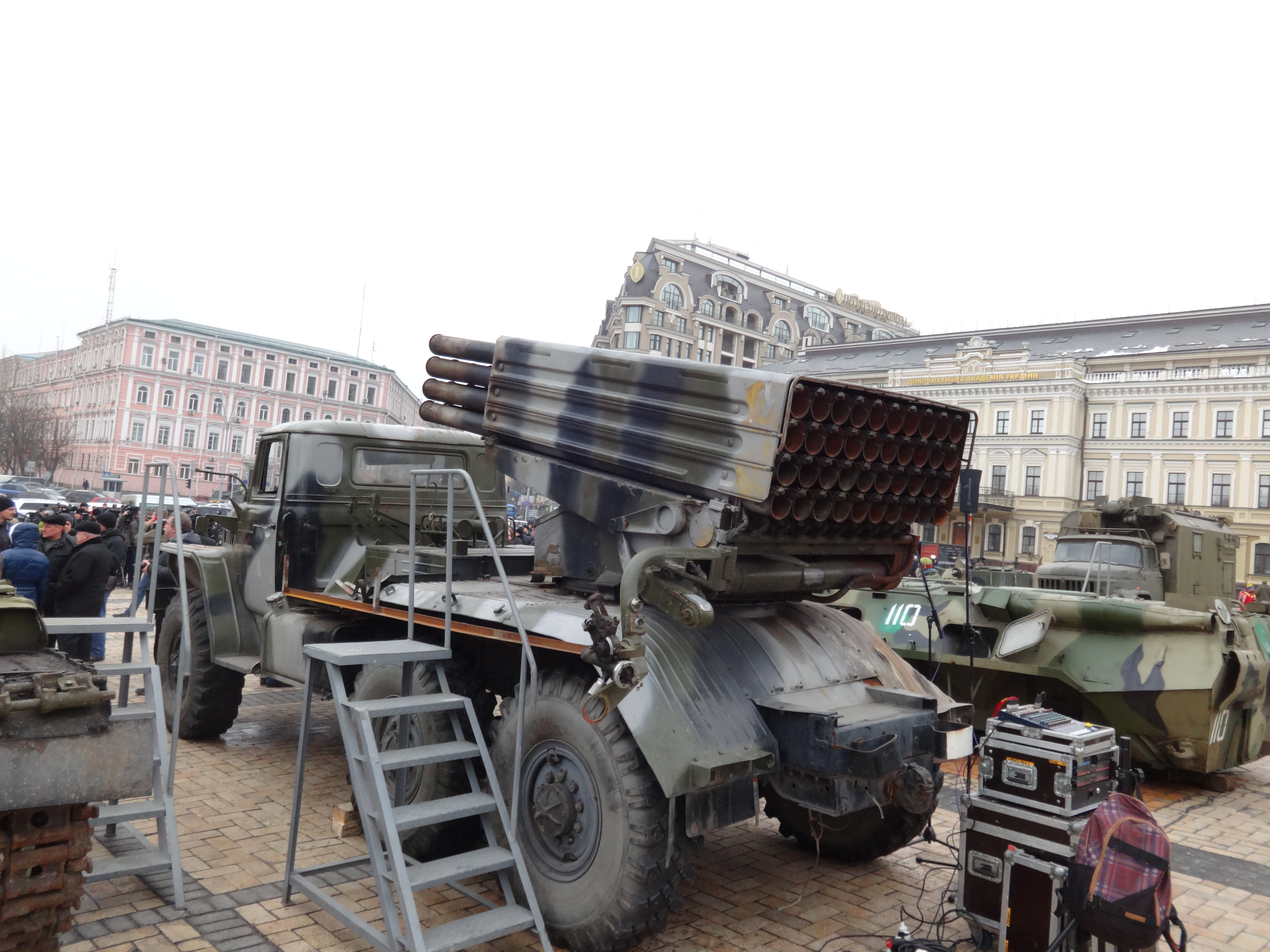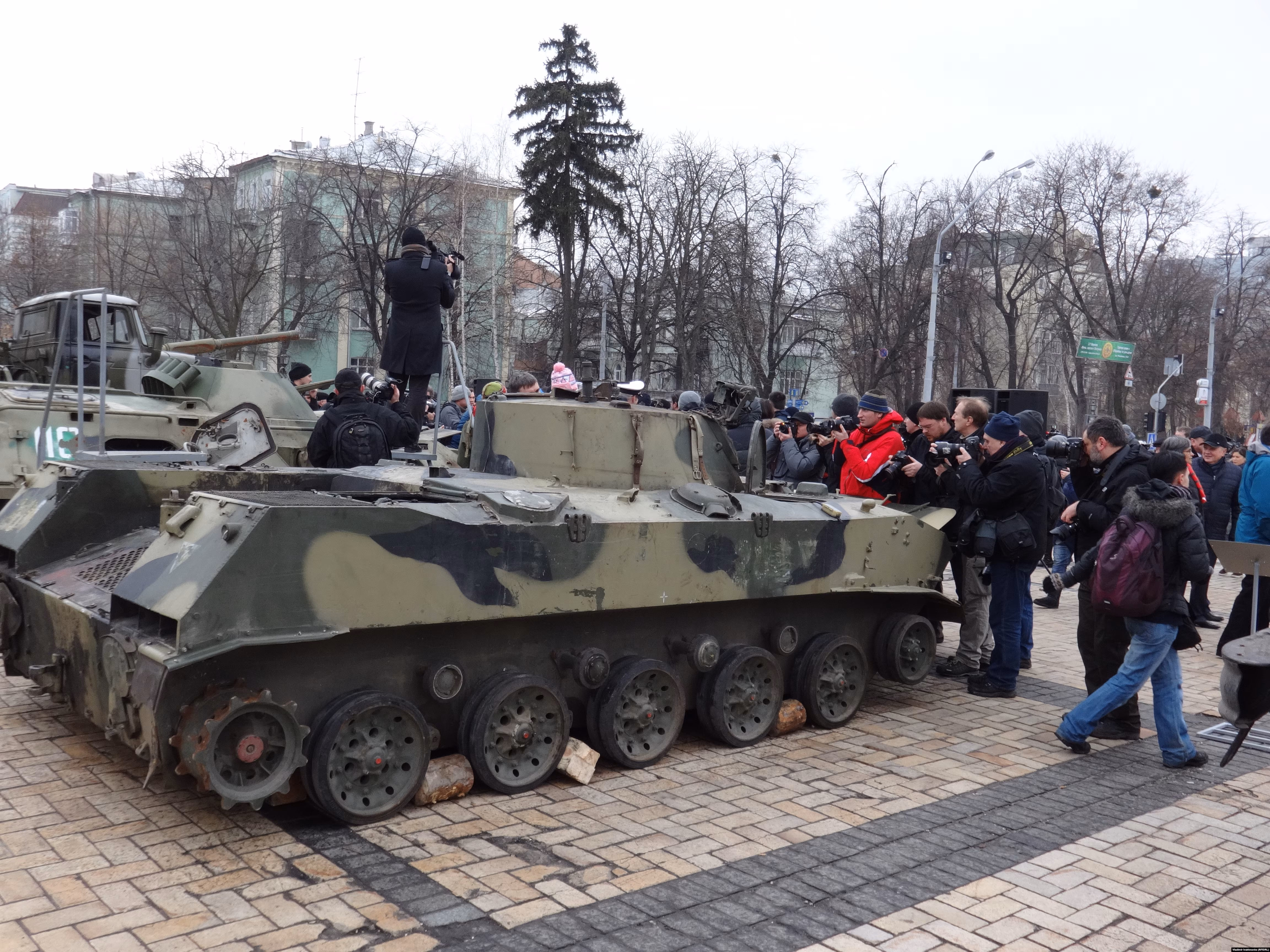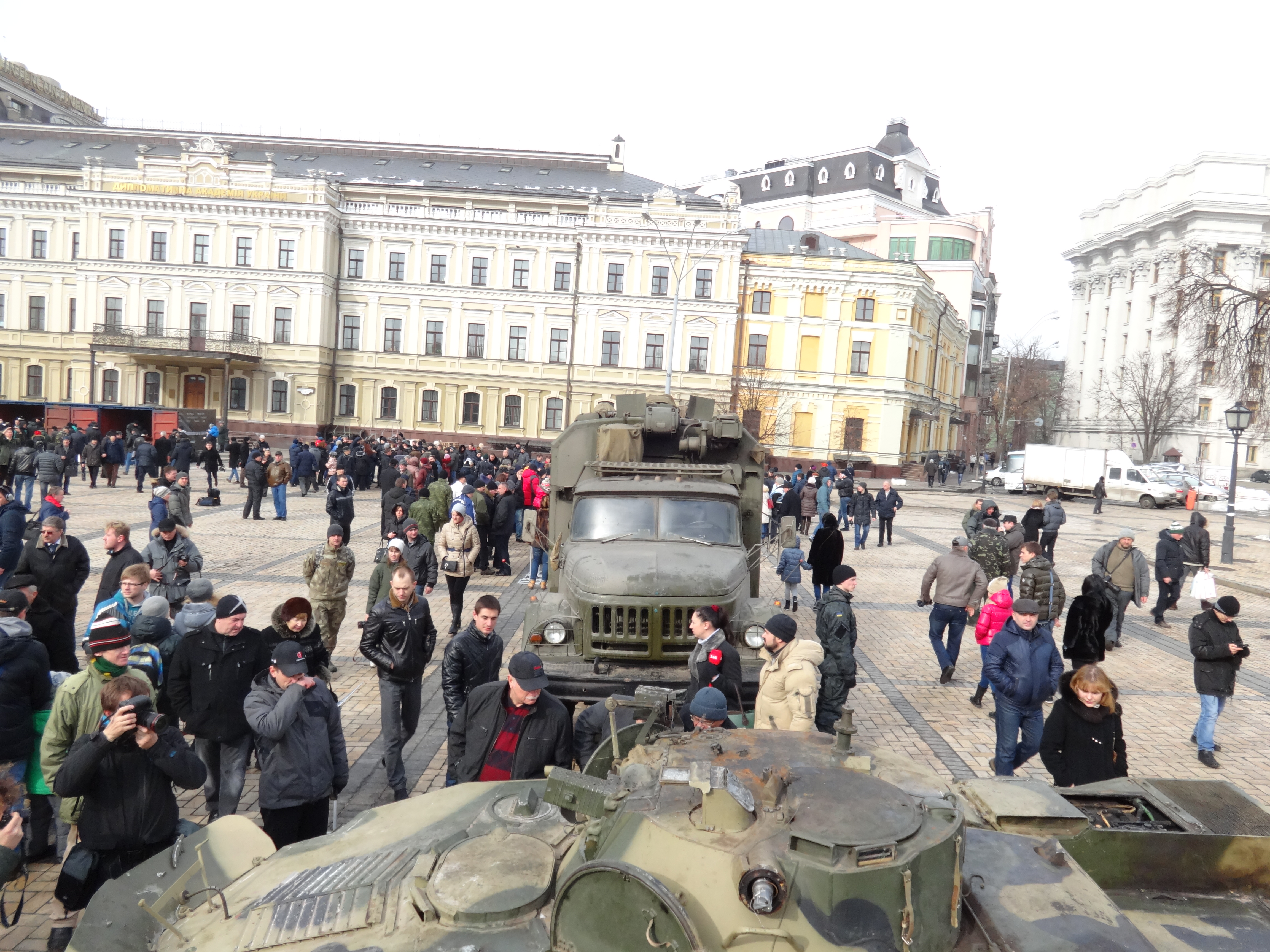 В субботу, 21 февраля, на Михайловской площади в центре украинской столицы по инициативе главы государства Петра Порошенко открылась выставка под названием "Присутствие". Экспонаты для нее предоставили Министерство обороны, Министерство внутренних дел, Служба безопасности, Национальная гвардия, Государственная пограничная служба и Государственная служба по чрезвычайным ситуациям.
