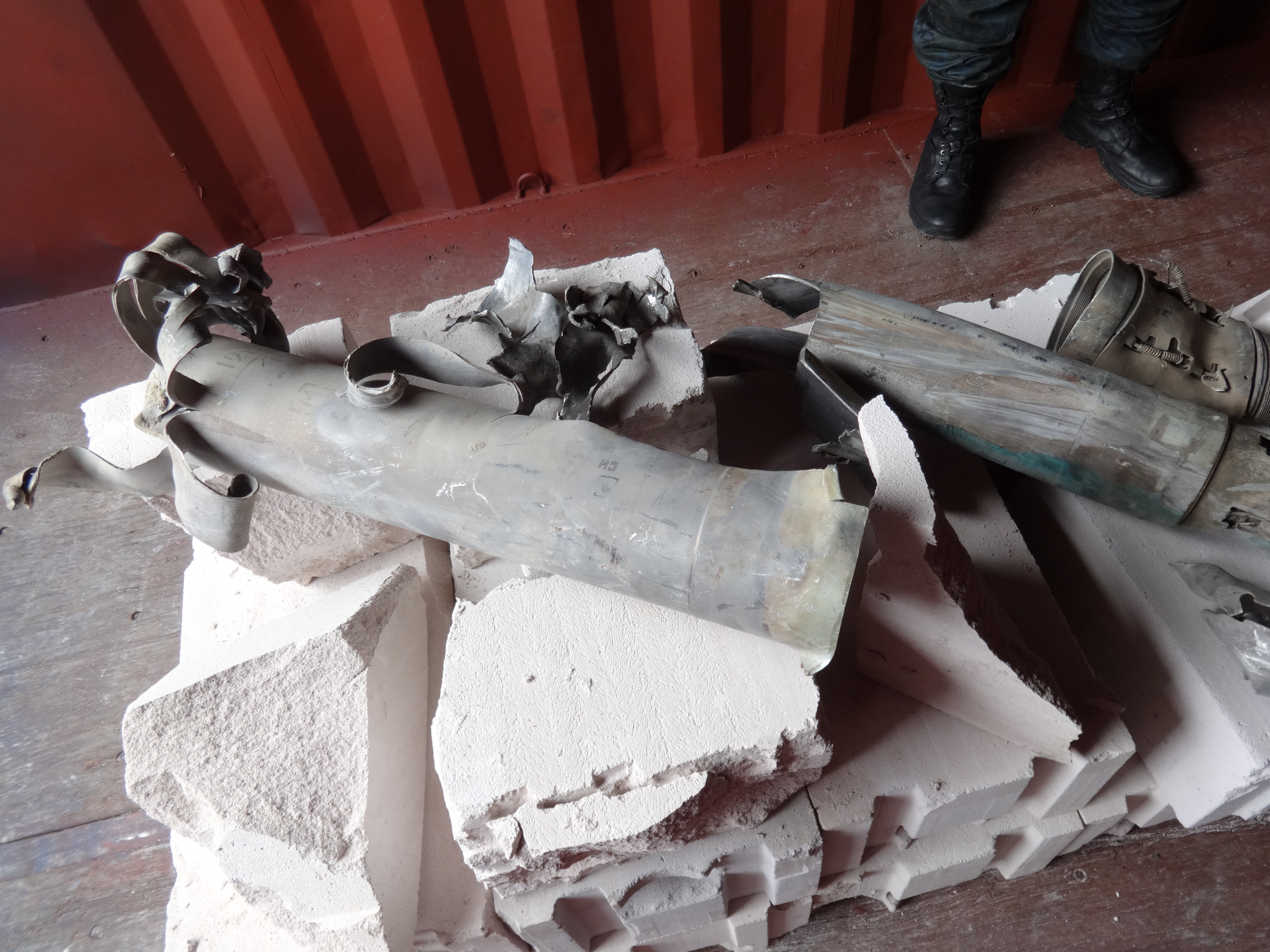 На выставке демонстрируются и захваченные украинскими военными во время операции в Дебальцеве гранатометы, датированные 2014 годом, которые не производятся на территории Украины. Еще одним доказательством российской агрессии являются беспилотники, изготавливаемые только на территории РФ (один из представленных БПЛА "Гранат-Ч" попал в руки украинских военных в ноябре 2014 в районе города Счастье Луганской области).