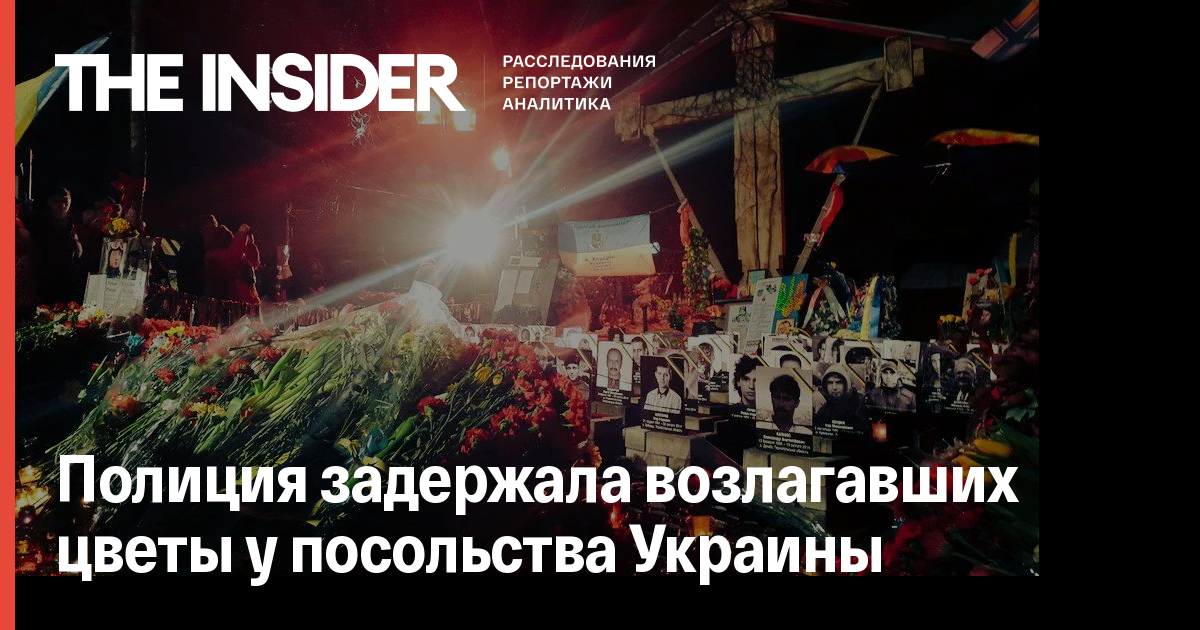 Восемь человек были задержаны в Москве после того, как пришли к зданию посольства Украины в день памяти «Небесной сотни», чтобы возложить цветы в память о погибших во время событий на Майдане. Задержанные - Ирина Калмыкова, Мария Рябикова, Александр Макаров, Виктор Капитонов, Елена Захарова, Екатерина Мальдон, Павел Кузнецов и Рустам Мустафин - доставлены в ОВД «Пресненский». Причина задержания не поясняется. Также, как сообщает Grani.ru, у входа в посольства дежурили провокаторы из одиозного кремлевского движения НОД. Провокаторов полиция не задерживала.