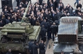 Как сообщала ТСН, на Михайловской площади выставлены РСЗО "Град", танки, боевые машины десанта, неразорвавшиеся ракеты, выпущенные 10 февраля по Краматорску из РСЗО "Смерч". В частности, танк, захваченный под Славянском, состоял на вооружении мотострелковой бригады в Буденновске, "Град" был приписан к части в Чечне, а одна из БМД принадлежала Псковской дивизии.