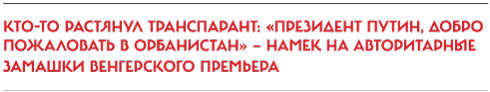 Такие привилегированные взаимоотношения многим венграм не по нраву. В ночь на 17 февраля активисты партии «Диалог за Венгрию» вывесили на мосту через Дунай плакат, на котором по-венгерски, по-английски и по-русски было написано: «Пакш-2. — Нет, спасибо!» Путин проезжал через этот мост, но баннера не видел — уже рано утром полиция его демонтировала. А тем временем на площади Баттяни, напротив парламента, кто-то растянул другой транспарант: «Президент Путин, добро пожаловать в Орбанистан» — намек на авторитарные замашки венгерского премьера.
