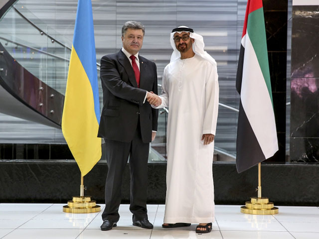 В рамках визита, по словам Геращенко, Порошенко провел встречу с наследным принцем эмирата Абу Даби, заместителем Верховного главнокомандующего Объединенных Арабских Эмиратов генерал-полковником Муххамедом бен Заидом аль Нахайяном. "В ходе встречи достигнуты договоренности о сотрудничестве с Объединенными Арабскими Эмиратами в области поставок Украине определенных видов вооружения и военной техники", - указал представитель МВД. Он порадовался, что в ОАЭ "не боятся угроз Путина о развязывании третьей мировой войны". При этом Геращенко уточнил, что "виды и объемы поставок" разглашению не подлежат.