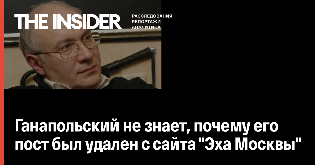 Редакция The Insider связалась с автором удаленного текста, чтобы выяснить, почему текст был убран с сайта: «Я не в курсе, это, пожалуйста, к Алексею Алексеевичу Венедиктову, главному редактору, только он может рассказать. Я сейчас нахожусь за рубежом и просто этого не знаю. Все что я могу сказать (про свой пост – прим. The Insider): он был, а потом сплыл, вот и все. А почему – пока не знаю» - прокомментировал The Insider Ганапольский.