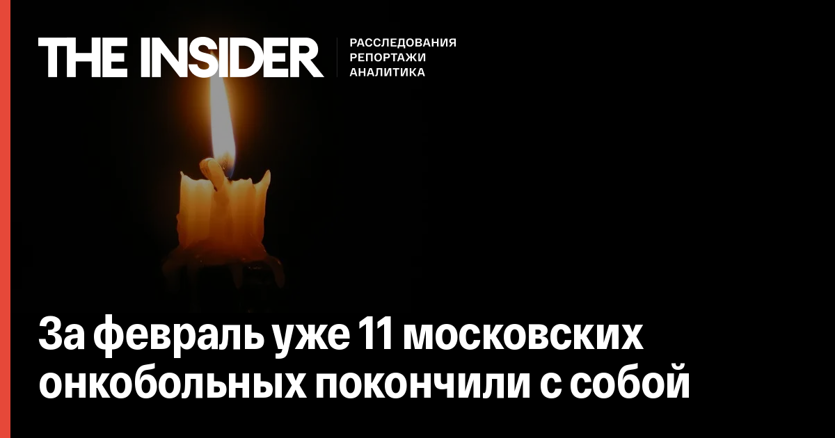 С начала февраля в Москве уже 11 людей покончили с собой из-за невыносимых болей, вызванных онкозаболеваниями (или из-за нехватки денег на дорогие лекарства).