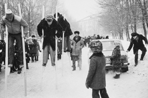 К 1978 году у меня было достаточно выставок за плечами. Я понимал, что неплохо фотографирую. В такой ситуации начинаешь соревноваться с обстоятельствами. Видишь, что надо снимать, и начинаешь снимать. Задача состоит в том, чтобы хаос линий превратить в космос. Вот представьте: художник ставит чистый холст и начинает первую метку, центр. А дальше он отпускает руку, и она сама идет. Он создает композицию. Каждый раз он вкладывает в композицию все новый и новый изобразительный элемент. Он вправе остановиться на любой композиции, которая будет ему по душе. Что перед фотографом? Перед ним хаос линий, они все пересекаются — из них можно выделить бесконечное количество композиций. А для того, чтобы выделить одну, надо отсечь лишнее. Художник сам создает идеальную композицию, а фотограф подходит к куче, которая до небес, и начинает вытаскивать из нее лишнее. Совершенно по-другому глаз работает, по-другому начинаешь соотноситься с реальностью. Начинаешь думать: а как правильно убрать? С определенного момента мы поняли, что, как бы мы ни изобретали, ни создавали эту «конструкцию» перед фотоаппаратом, реальность всегда интереснее и занимательнее. Вот составил ты композицию, и что? А потом за угол вышел, а тебе судьба такое там покажет.