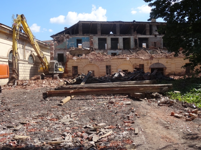 Во-первых, постановлением городского правительства объект передавался под гостиницу, а не апарт-отель (читай: жилье). Во-вторых, приспособление разрешалось только «без изменения предметов охраны». А их нарушает как минимум пробивка дверных проемов в охраняемых стенах, вызванное этим и сооружением мансарды изменение облика фасадов.