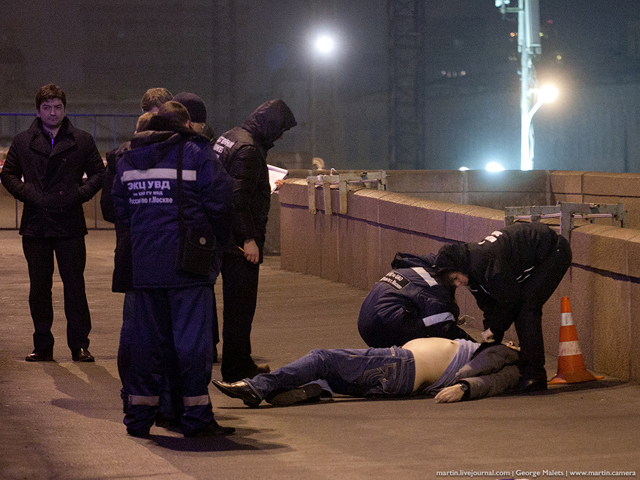 — Дмитрий Гудков (@gudkovd) 27 февраля 2015 Убит в нескольких метрах от Кремля, в охраняемой и снимаемой со всех точек зоне