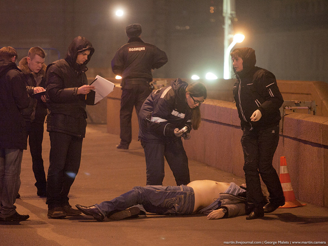 "Политик с девушкой через Красную площадь пошли в сторону Васильевского спуска, потом поднялись на Большой Москворецкий мост и отправились в сторону Болотной площади. Через 200 метров с ними поравнялась иномарка, откуда Немцова расстреляли в упор, после чего машина сразу же скрылась", - добавил источник. В правоохранительных органах считают, что это убийство было тщательно спланировано, и к нему готовились заранее.