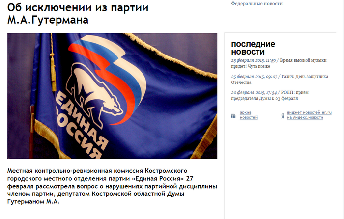 — Факты свидетельствуют о том, что Гутерман М. А. своими действиями (бездействием) нанес ущерб репутации и политическим интересам партии. В связи с этим политсовет (...) принял решение об исключении Гутермана М. А. из партии, — отмечается в сообщении.