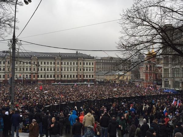 — Лизавета Нестерова (@nesteliza1) 1 Март 2015 По данным РИА Новости, на акции замечены депутат Дмитрий Гудков, Геннадий Гудков, а также Михаил Касьянов.