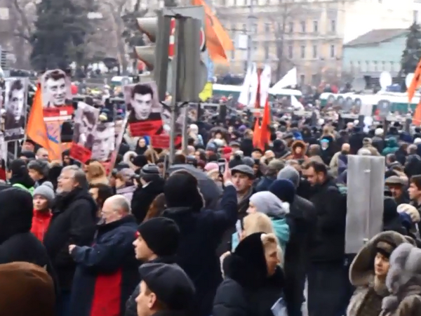 Акция памяти Борис Немцова. Кадр Радио Свобода С момента убийства в центре Москвы политика Бориса Немцова прошло почти два дня. За это время появилась видеозапись с камеры, запечатлевшей момент преступления, был озвучен ряд версий, появились первые отклики и воспоминания.
