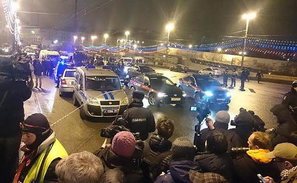 Следственные органы выяснили по данным уличных камер часть маршрута предполагаемого убийцы сопредседателя РПР-Парнас Бориса Немцова после совершения преступления. Судя по видео, опубликованном телеканалом LifeNews, после убийства оппозиционера автомобиль киллеров повернул с Большого Москворецкого моста направо на Болотную улицу, по которой он на большой скорости проследовал до подъема на Большой Каменный мост. На мосту автомобиль пропустил пешеходов, после чего перестроился в крайний левый ряд и ушел вправо — на Моховую улицу. Менее чем за минуту машина предполагаемых убийц доехала до поворота на Тверскую и проследовала мимо Госдумы по Охотному ряду, а затем свернула на Большую Дмитровку и затерялась среди других авто.