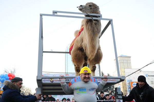 Вице-чемпион соревнования «Самый сильный человек планеты-2005» Эльбрус Нигматуллин установил мировой рекорд, подняв живого верблюда весом 700 кг на одной из улиц Челябинска. Об этом сообщает «Российская газета». Новый рекорд был поставлен спортсменом возле бронзовой скульптуры «Мальчик и верблюд». «Этим рекордом я хотел оказать уважение очень важному для Челябинска животному. Поднятием железа сегодня никого не удивишь. Про многие рекорды люди быстро забывают, а такой необычный, я уверен, останется в памяти горожан», — пояснил спортсмен.