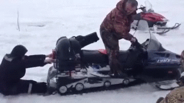 On March 5, 2015, Internet users posted a video of a man being sucked into a snowmobile during a failed skiing attempt. The video, titled Russian Candidate for the Darwin Award, contains strong language (in Russian), so please hide your mother and children, before watching.