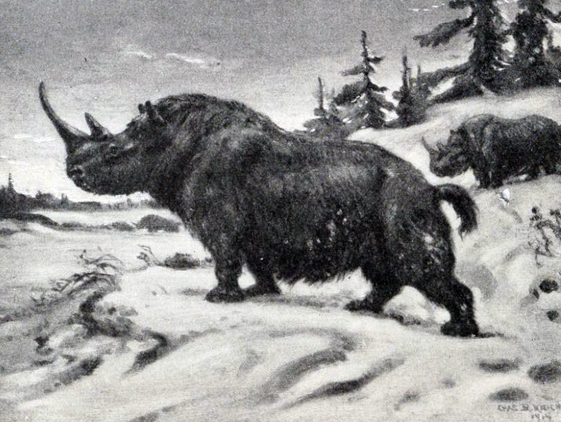 Для начала кратко напомним прижизненную историю этого вида. Шерстистый носорог (Coelodonta antiquitatis) жил в холодных степях Евразии времен последнего оледенения. Взрослое животное было от 3 до 3,8 метров в длину, до 2 метров в высоту. Вес его оценивают в 1800 – 2700 килограммов. Шерстистый носорог имел два рога, длина переднего рога могла превышать метр, а вес доходил до 15 килограммов, лобный рог был поменьше. Изучение образцов ДНК показало, что наиболее близким родственником шерстистого носорога является суматранский носорог (Dicerorhinus sumatrensis). Когда климатические условия на Земле изменились и походящая среда обитания шерстистого носорога исчезла, вид вымер. Считается, что последние шерстистые носороги жили приблизительно 10 тысяч лет назад.