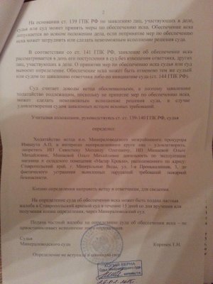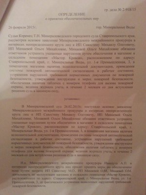 Минераловодский городской суд запретил местному активисту Михаилу Савостину заниматься торговлей. Поводом послужила его офиса МЧС и прокуратурой. Проверка проводилась по жалобе человека по фамилии Жмуров, который якобы является клиентом Савостина, при этом активист утверждает, что такого клиента у него никогда не было. У Савостина нашли нарушения пожарной безопасности. Судебное разбирательство по иску прокурора должно пройти 17 марта, однако суд еще до проведения разбирательства постановил в качестве обеспечительной меры запретить предприятию Савостина вести деятельность в магазине и на складе «до фактического устранения выявленных нарушений требований пожарной безопасности». Савостин сообщил , что 9 марта ему придется уволить всех сотрудников, поскольку «работать не дадут». Активист полагает, что решение суда связано его политической позицией и поездкой на территорию Украины.