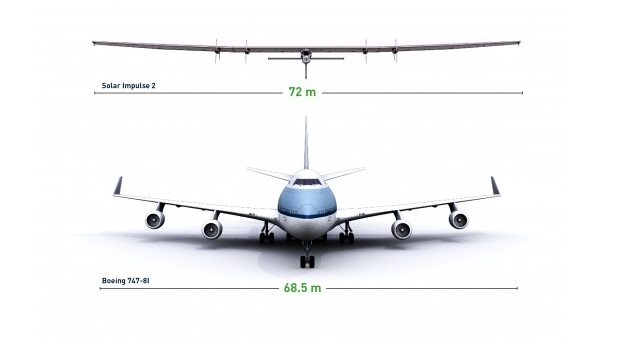 Размах крыльев аппарата Si2 немного превышает размах крыльев "Боинга-747", но вес самолета сопоставим со средним легковым семейным автомобилем.