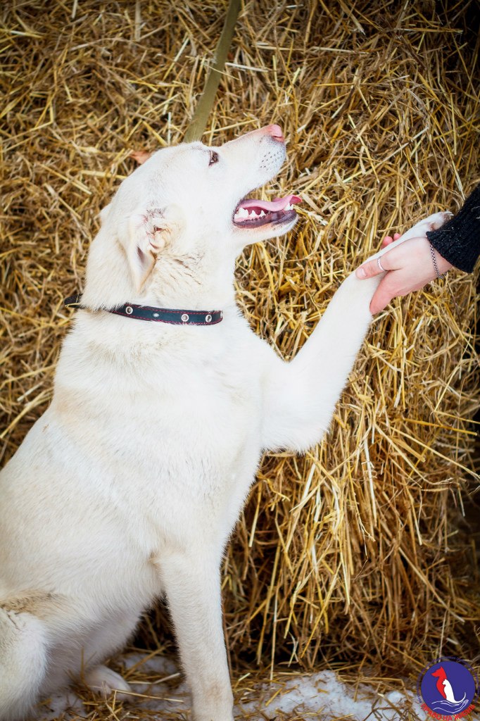 Напротив Альфы и Омеги сидят-посиживают в вольере, поджидая добрых хозяев, Снегурочки. Две девчонки. Привиты. Стерилизованы. Возраст около 7-8 месяцев. Одна белоснежная, вторая кремовая. Третий, с рыжим пятном - кобель, о нём отдельно как-нибудь расскажу.