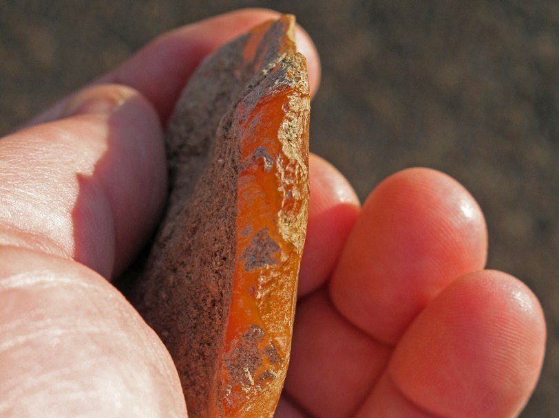 University of Oregon Археологи, работающие в окрестностях небольшого города Рили (Riley) на востоке штата Орегон, обнаружили каменное орудие – скребок из оранжевого агата. Находка была сделана под слоем пепла вулкана Сент-Хеленс, что позволило ее датировать. И возраст оказался неожиданным – около 15800 лет.