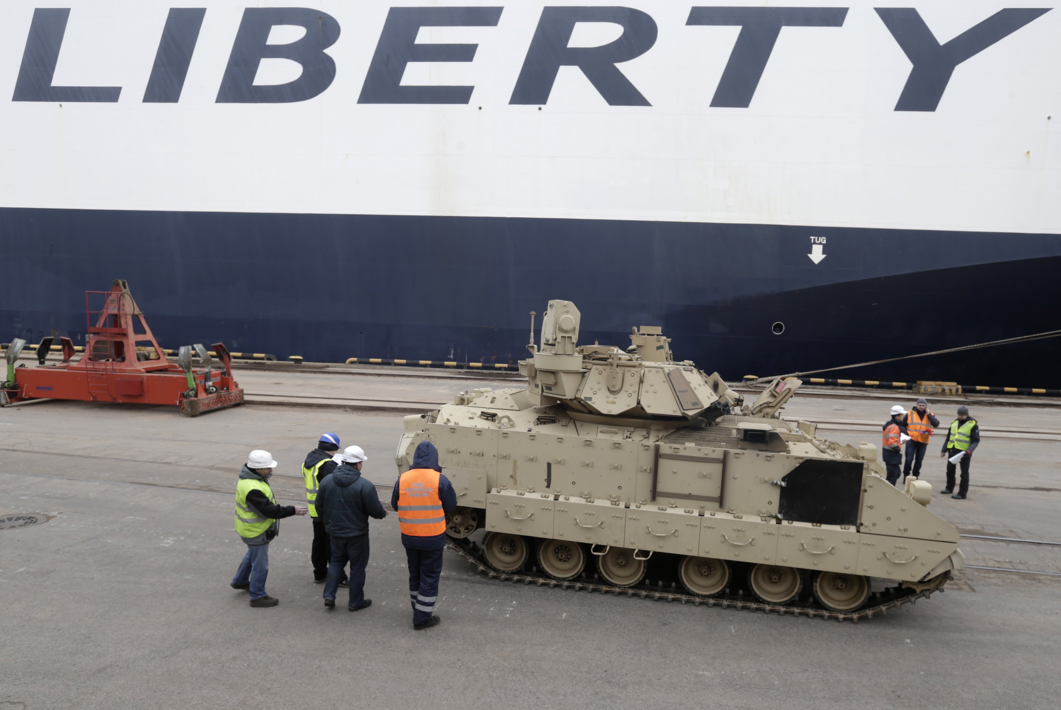 В порту Риги 9 марта разгрузился корабль Liberty Promise Военно-морских сил США. Он доставил более сотни единиц бронетехники для 2-го кавалерийского полка 1-й бригады 3-й пехотной дивизии армии США, участвующих в учениях Atlantic Resolve, в том числе танки Abrams. Цель этих учений – продемонстрировать заинтересованность США в поддержании коллективной безопасности в Балтийском регионе и Польше. Прибывшая бронетехника будет использована американскими военнослужащими во время трехмесячного боевого дежурства на территории стран – союзников США по НАТО. По словам официальных американских представителей, такая символическая акция должна продемонстрировать солидарность союзников по НАТО перед лицом угрозы со стороны России.