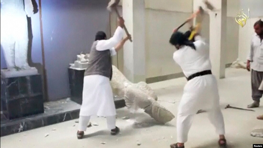 Первым известным актом масштабного вандализма со стороны боевиков "Исламского государства" в Ираке стал погром в январе в центральной библиотеке и университете Мосула, когда они сожгли на огромном костре не менее 100 тысяч книг, в том числе очень древних. Потом в конце февраля в музее Мосула с помощью кувалд они разбили множество уникальных и бесценных скульптур и других артефактов, также названных ими "ложными идолами".