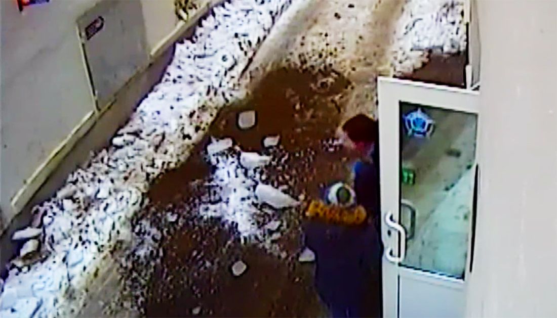 More than three tons of snow and ice fell suddenly from the rooftop of five-story building in Vladivostok on Saturday afternoon, March 7. No one was injured, though the first ice to crash to the ground narrowly missed two small children. The spectacle was captured on an outdoor security camera.