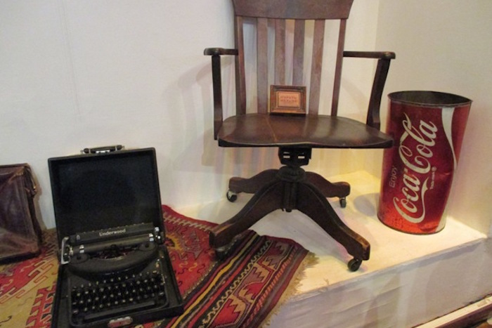 Фото из архивов музея Анны Ахматовой Три словаря. Маленькая книга — словарь итальянского языка. Большая — энциклопедический словарь Бродского. Издание среднего размера, как говорят научные сотрудники музея Фонтанного дома, — «загадка для служащих музея»: это словарь тюремно-лагерного жаргона 1992 года издания. Гондола. В музее говорят, что маленькая гондола — «это память о Венеции». Считается, что на столе Бродского всегда стояли особенно памятные предметы, вызывавшие у поэта какие-то ассоциации. Среди них была и венецианская гондола. Маленькая икона Николая Чудотворца. Была подарена Иосифу Бродскому Анной Ахматовой.