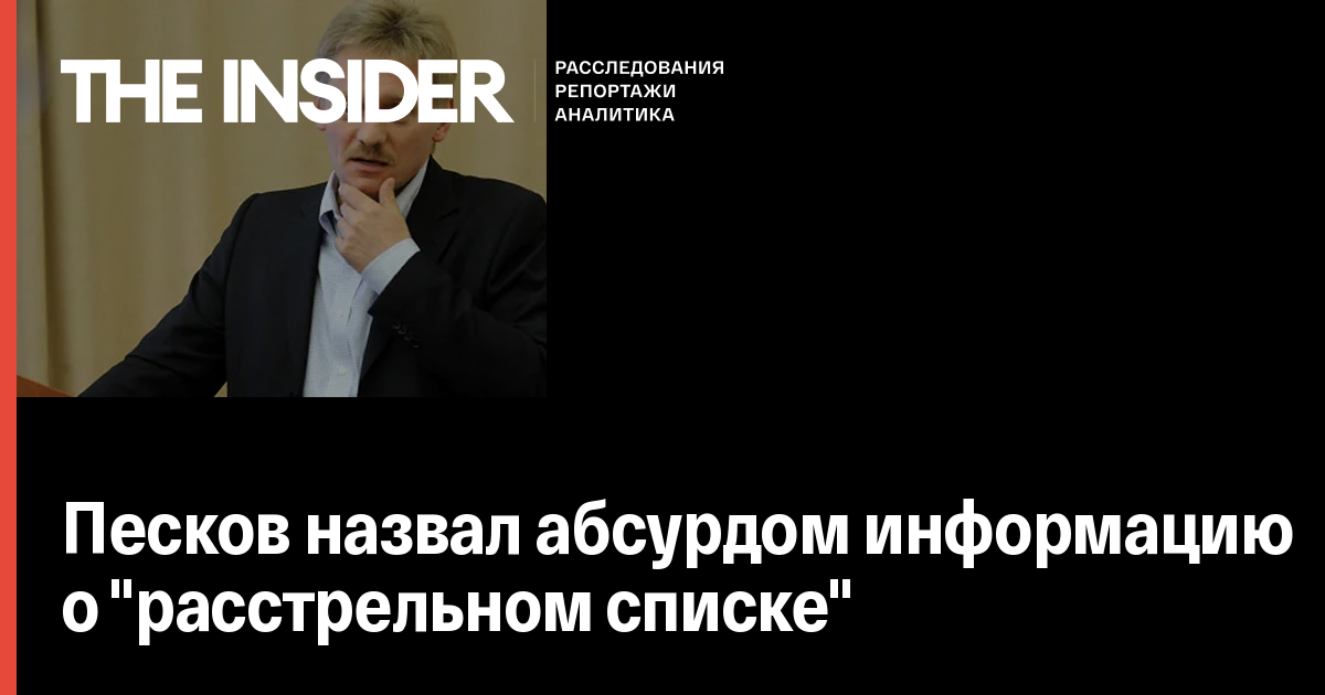 Пресс-секретарь Путина Дмитрий Песков заявил радиостанции «Эхо Москвы», что считает абсурдом информацию о существовании "расстрельном списке", состоящем из политиков и журналистов.