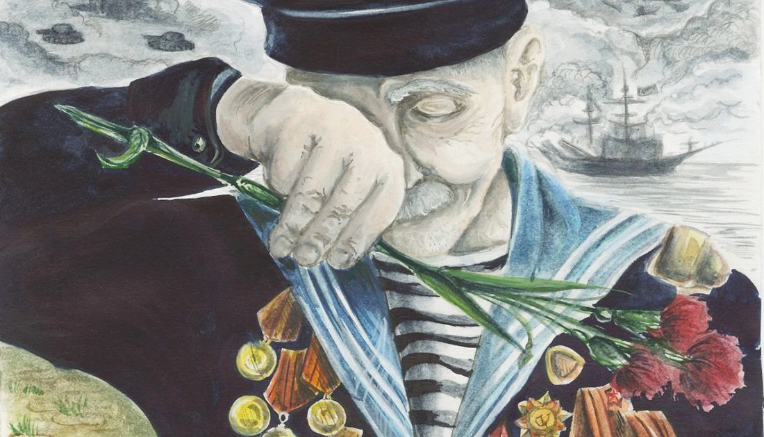 Рисунок 18-летней жительницы Благовещенска «Тягость воспоминаний» почти полностью — за исключением фона — повторяет реальную фотографию человека во флотской форме.