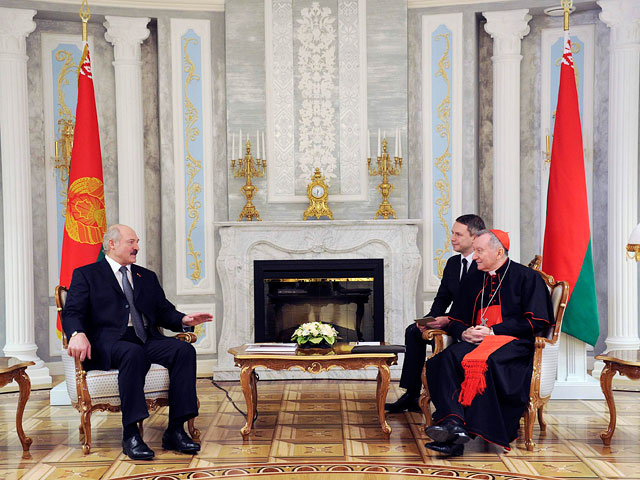 Президент Белоруссии Александр Лукашенко встретился в пятницу с государственным секретарем Ватикана кардиналом Пьетро Паролином, прибывшим в Минск с визитом. В ходе беседы с главой внешнеполитического ведомства Святого престола Лукашенко подчеркнул, что в Белоруссии удается сохранять межконфессиональный мир и взаимопонимание.