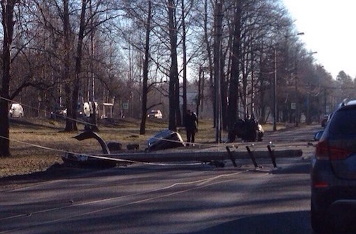 От удара на проезжую часть упал столб, перегородив движение. По информации сервиса «Яндекс.Пробки», скорость на участке между Лисьим Носом и поселком Ольгино не превышает 7 км/ч. На месте скопилась двухкилометровая пробка.