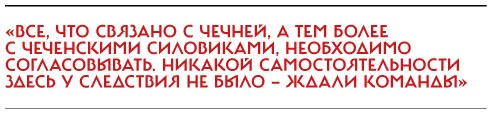 Но есть и другая причина, почему следствие, имея на руках фотосвидетельства тех, кто, как предполагают, убивал Немцова, не торопился с их арестом. «Все, что связано с Чечней, а тем более с чеченскими силовиками, необходимо согласовывать. Никакой самостоятельности здесь у следствия не было — ждали команды», — сказал источник.