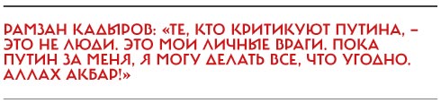 «Кадыров старается держать все, что происходит в Чечне, под контролем. Он построил там тоталитарную систему власти. Поэтому любые действия силовиков в Чечне — это все прямая компетенция Кадырова, без него ничего не решается, — вторит в интервью NT и глава правозащитного центра «Мемориал» Олег Орлов, которого глава Чечни однажды назвал «врагом народа» (см. справку на стр. 35). — За последние годы,— продолжает Орлов, — нам неизвестны случаи, когда бы по серьезным делам задерживались чеченские силовики. Есть масса разных сообщений от правозащитников, в том числе очень аргументированные, о причастности чеченских силовиков к серьезным преступлениям. Но все спускается на тормозах».