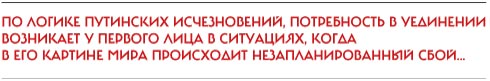 «Уехал за советом к старцу в Горный Алтай», «ишемический инсульт», «у него депрессия» — какие только версии исчезновения с экранов госканалов Путина не обсуждали на элитных сборищах, на лентах респектабельных иностранных информагентств и в социальных сетях и сторонники, и оппоненты президента страны