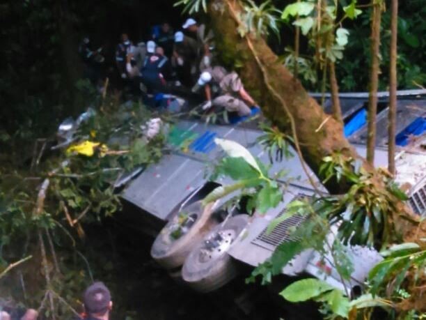 Ранее сообщалось о 15 жертвах. Туристический автобус упал с обрыва после того, как водитель не справился с управлением.