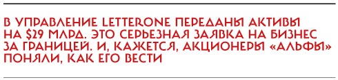 В управление LetterOne переданы активы на $29 млрд. Это серьезная заявка на бизнес за границей. И, кажется, акционеры «Альфы» поняли, как его вести. Правила игры в развитом мире сильно отличаются от российских. Но акционеры «Альфы», поставив себе такую цель, вполне могут адаптироваться к новым для себя условиям. Свидетельство тому — недавняя статья Михаила Фридмана в Financial Times, в которой автор вполне откровенно говорил о пороках авторитарных режимов и преимуществах либеральных демократий. Разумеется, это не полная бизнес-эмиграция: в России у владельцев «Альфы» осталось еще очень много активов. Но плацдарм для «отступления» на случай, если вести бизнес в отечестве станет совсем невозможно, у них готов. Многие российские бизнесмены мечтали бы сейчас оказаться хотя бы на середине пути, пройденном акционерами «Альфа-Групп».